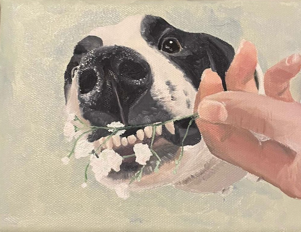Hi! I do commissions! If you're interested in portraits, pet portraits, sentimental images, etc, I'm your gal! I typically work in oil on wood panel. I also tuft small rugs, t-shirts and prints! Reach out to me at either of my emails with requests or questions.